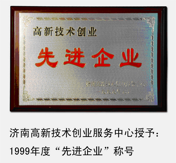 1999年,被濟南高新技術創(chuàng)業(yè)服務中心授予“高新技術創(chuàng)業(yè)先進企業(yè)”稱號