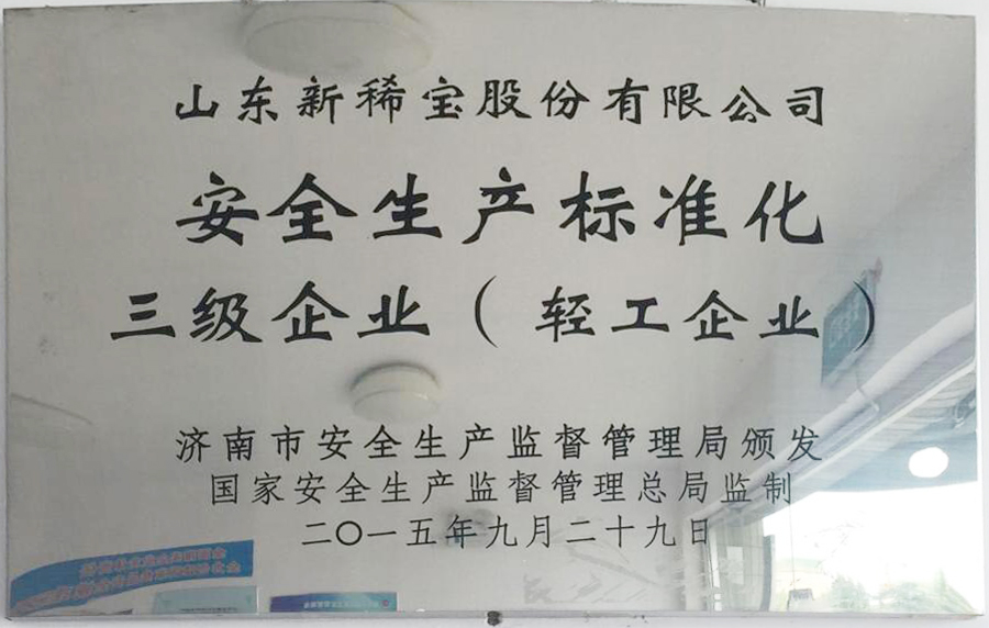2015年,被濟南市安全生產(chǎn)監(jiān)督管理局評定為“安全生產(chǎn)標準化三級企業(yè)”