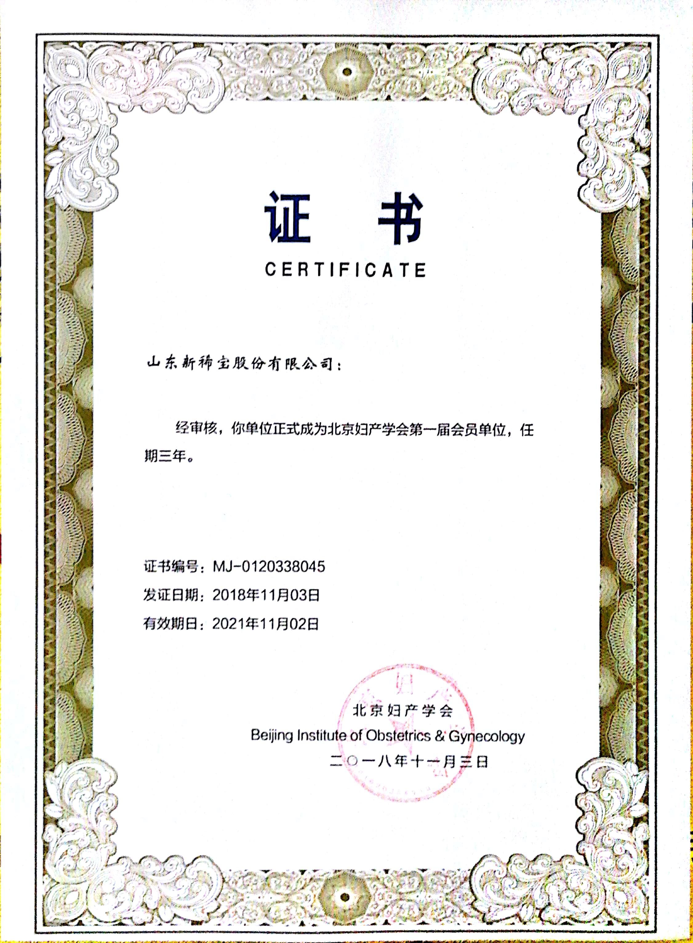 2018年,公司成為北京婦產(chǎn)學會會員單位