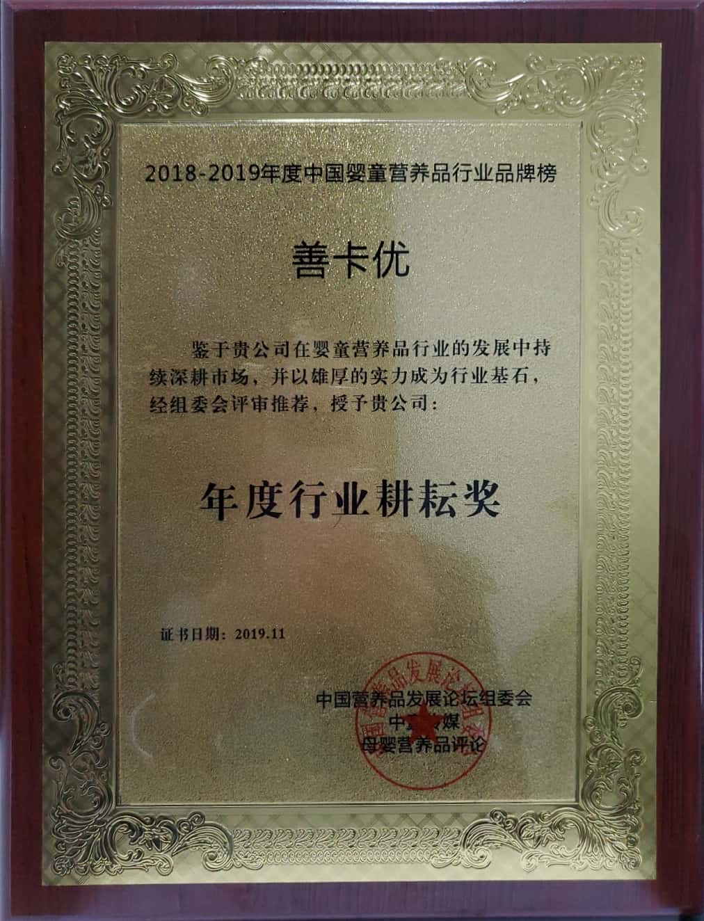 善卡優(yōu)被中國營養(yǎng)品發(fā)展論壇組委會(huì)評(píng)為“年度行業(yè)耕耘獎(jiǎng)”